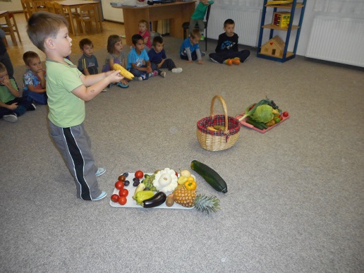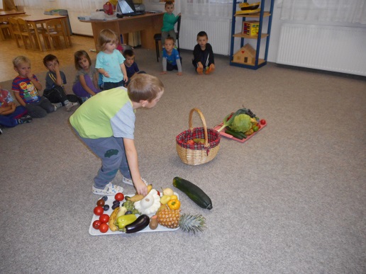 Naučili jsme se poznávat a pojmenovávat různé druhy ovoce a zeleniny. Víme jakou mají barvu, jak chutnají a co z nich můžeme uvařit. Uvařili jsme si ovocný a zeleninový salát, na kterém jsme si pochutnali.