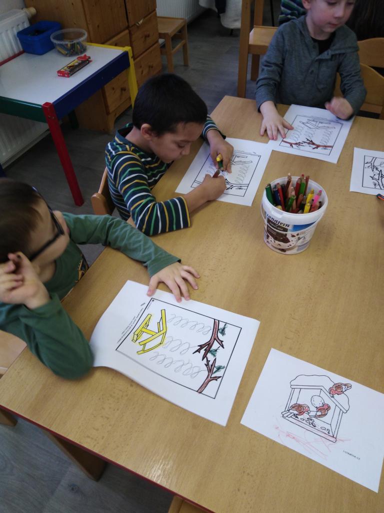 Některé ptáčky přes zimu nevidíme, protože odlétají do teplých krajin. Ty, co tu zůstávají jsme se učili pojmenovat a také poznat podle jejich zbarvení, když k nám přiletí na semínka do krmítka.
